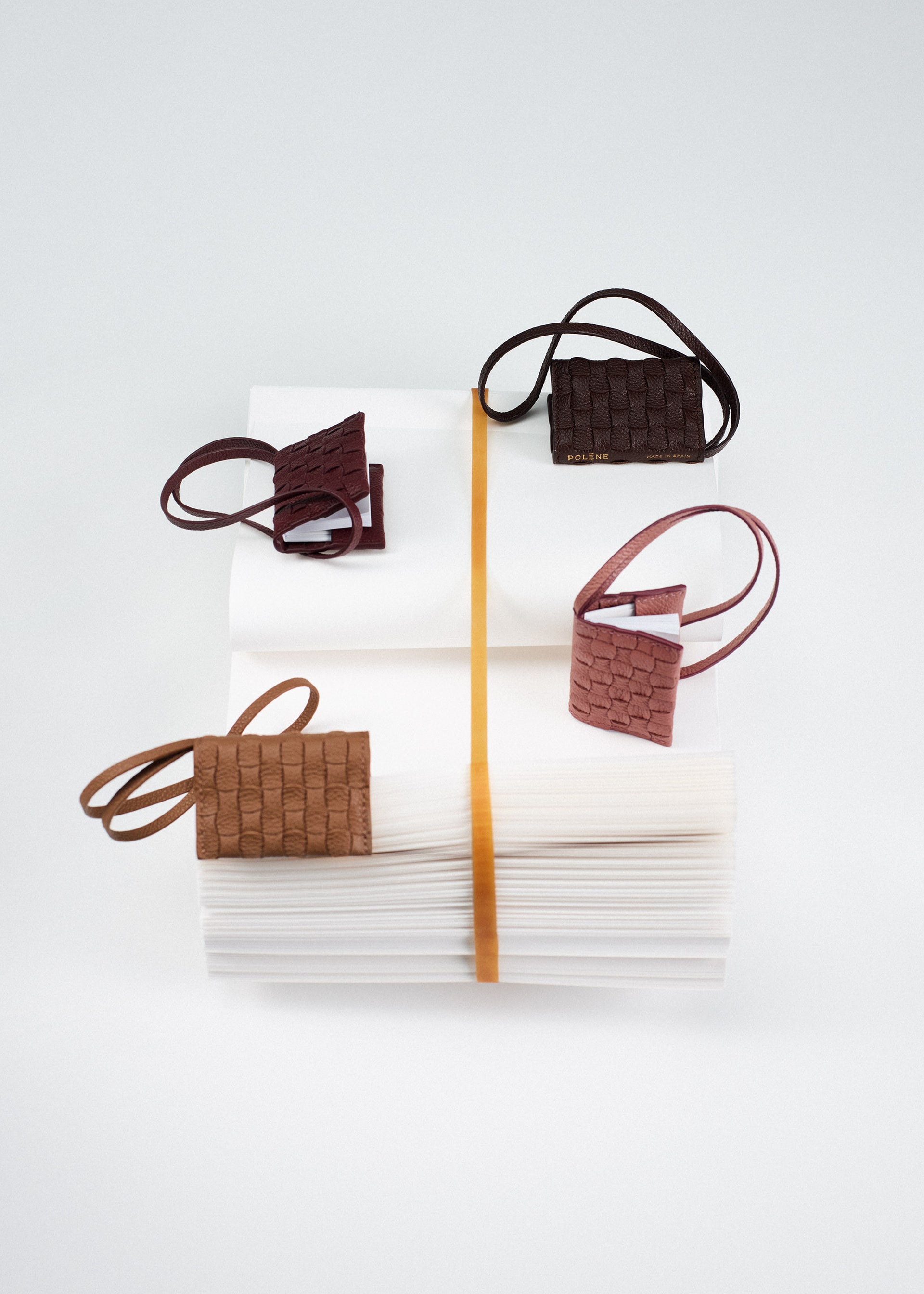 『Longue Vue』の創刊にあわせ、ポレーヌはレザーステーショナリー “La Papeterie de Cuir”を発表します。革が湛える豊かな質感と紙の詩情が出会うブティック・アトリエから、限定コレクションが生まれました。当コレクションの一部は、オンラインでもご紹介しています。静かな夢想を綴るカバー付きノート、レザーの折り紙を思わせるステッカー、日常を新たな角度から見つめるトロンプ=ルイユのチャームたち…“La Papeterie de Cuir”は、想像の余白をひらきます。