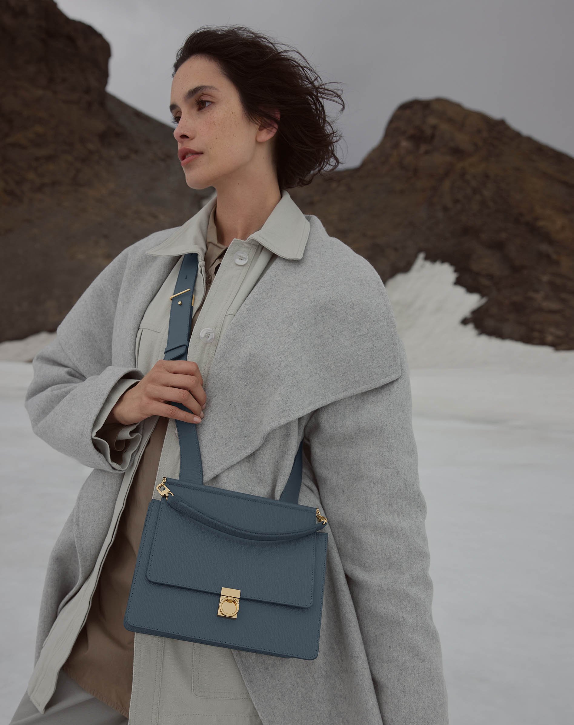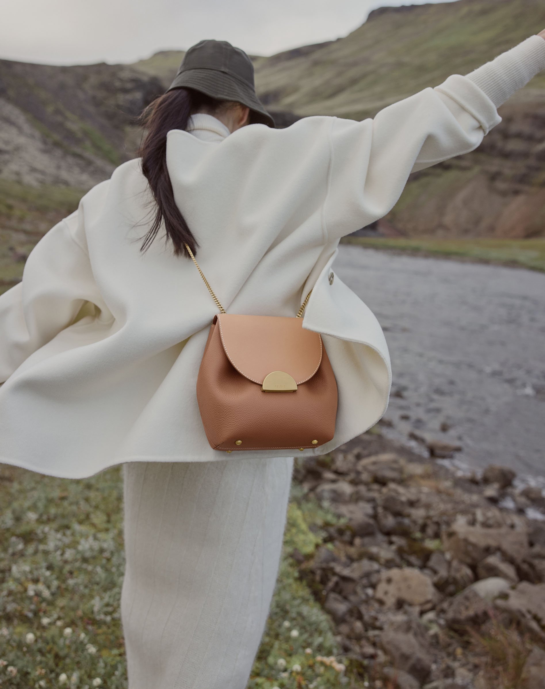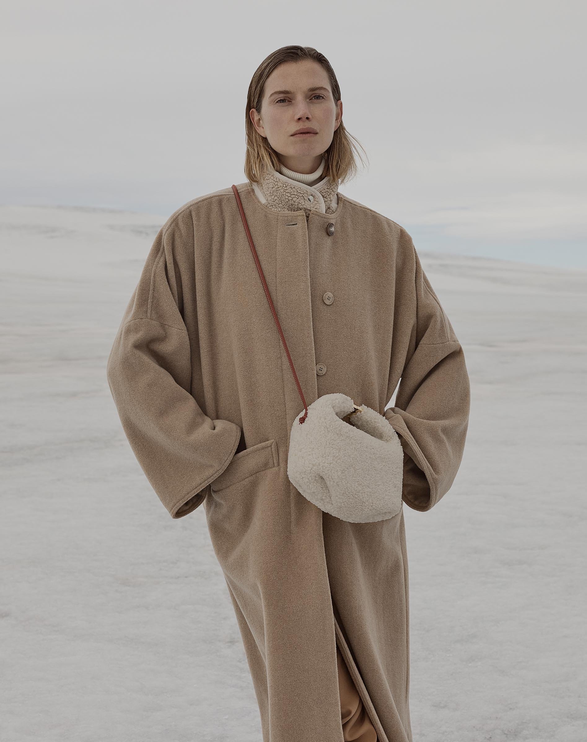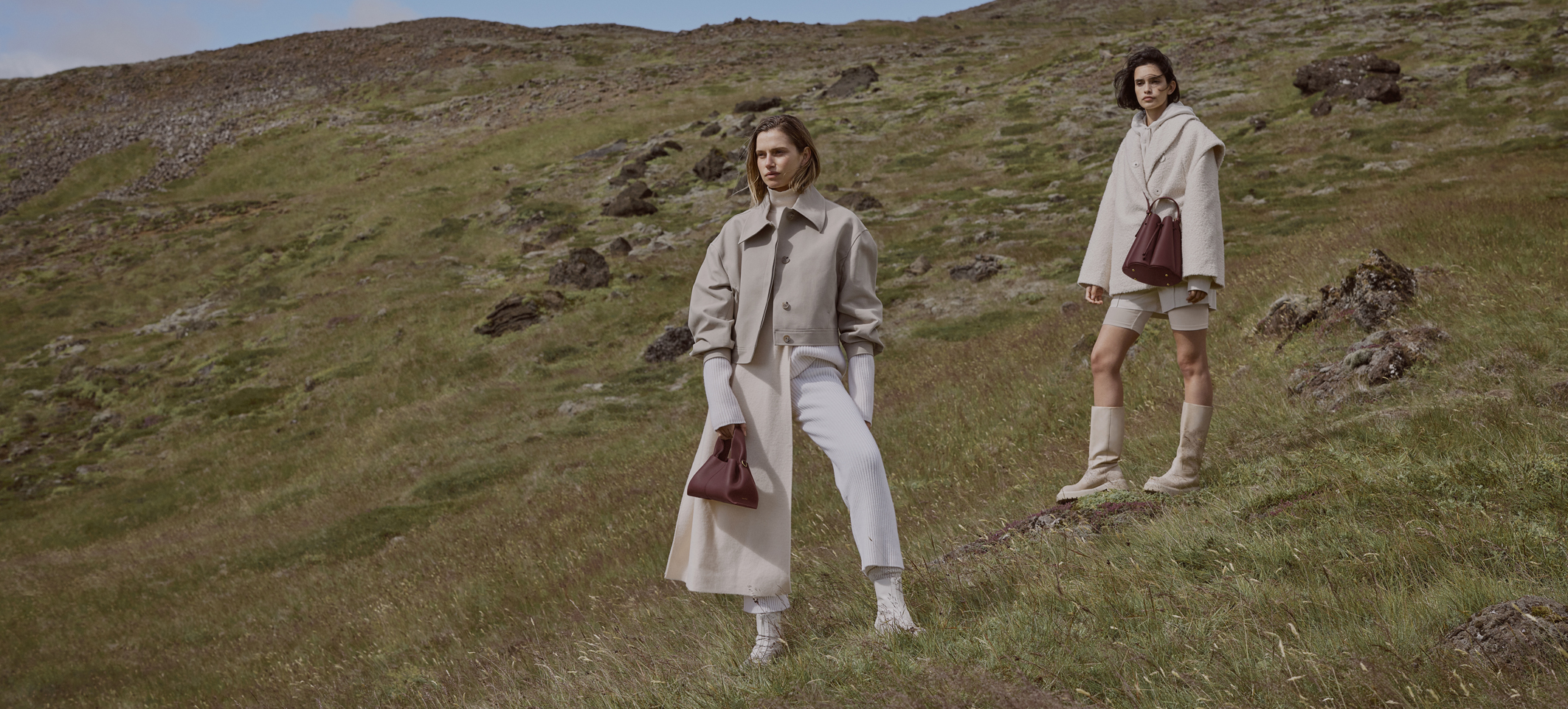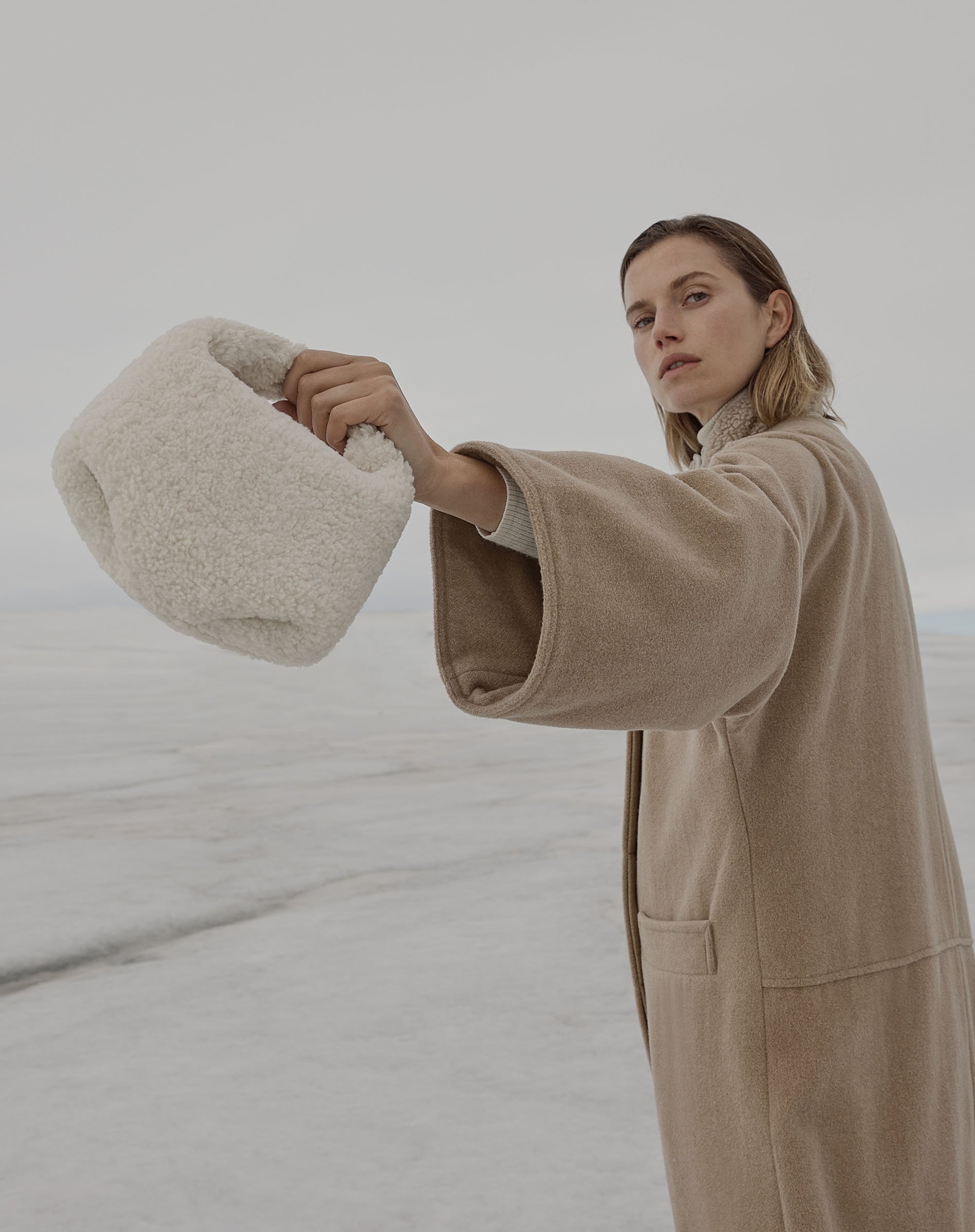 手つかずの純粋な氷河、火山の大地、地面から立ち上る煙など、アイスランドならではの景観を背景にポレーヌのレザーグッズコレクションにスポットライトを当てます。非日常的でドラマチックゆえに選ばれたロケーションは、ポレーヌブランドが生み出すコレクションの控えめな純粋さを際立たせています。