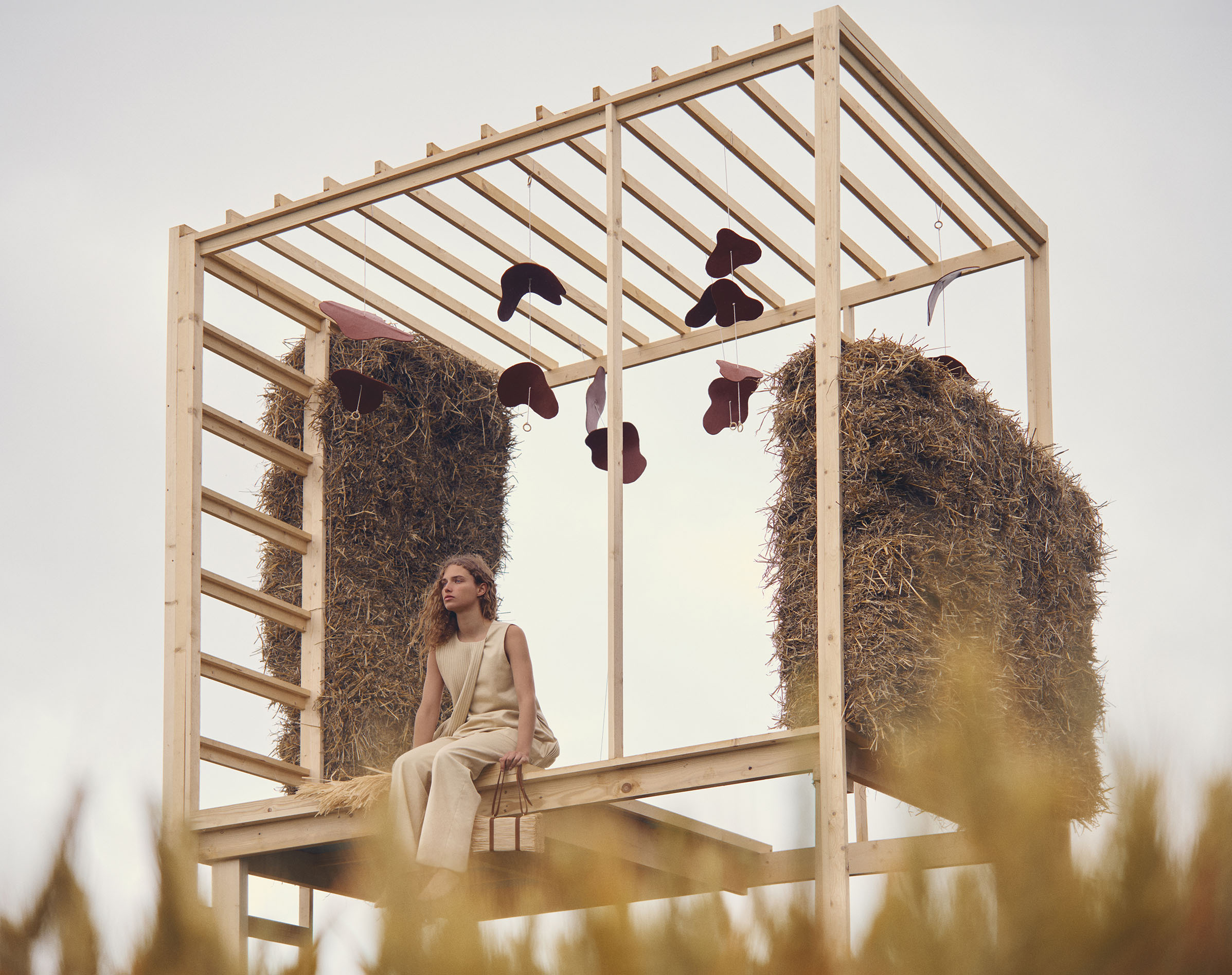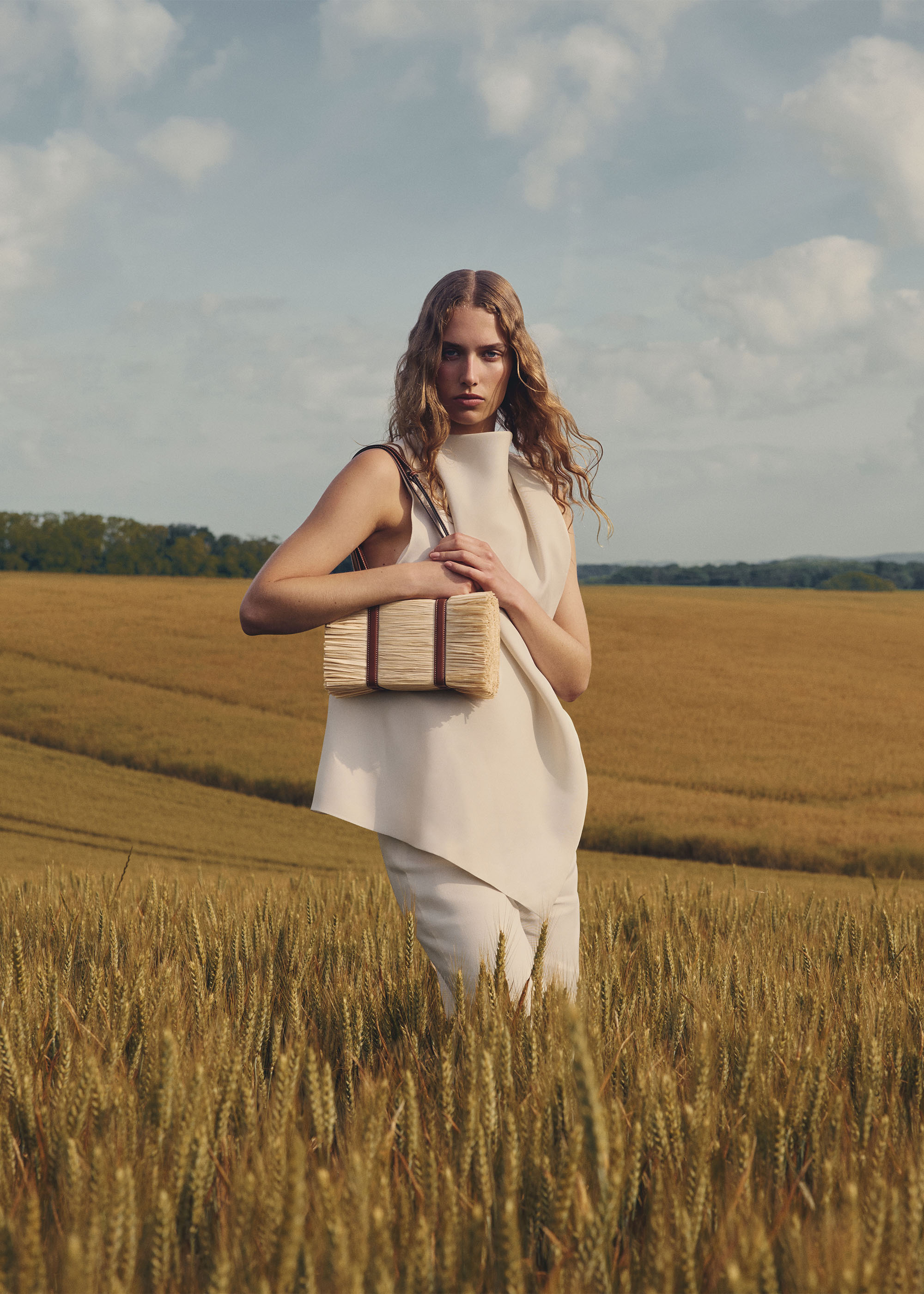 まるでわら束のような「Paï(パイ)」は、天然のラフィア素材を用いたクリエイティビティと職人技が融合したバッグです。 この斬新なモデルは、自然からインスピレーションを受けたデザインを追求してきたメゾンのクリエイティブな夢を背景にしています。その夢を忠実に再現したこのモデルは100%天然素材かつオーガニック認証済みのラフィアの繊維を使用。コニャック色の2本のレザーバンドの革帯、ダブルショルダーストラップがあしらわれています。