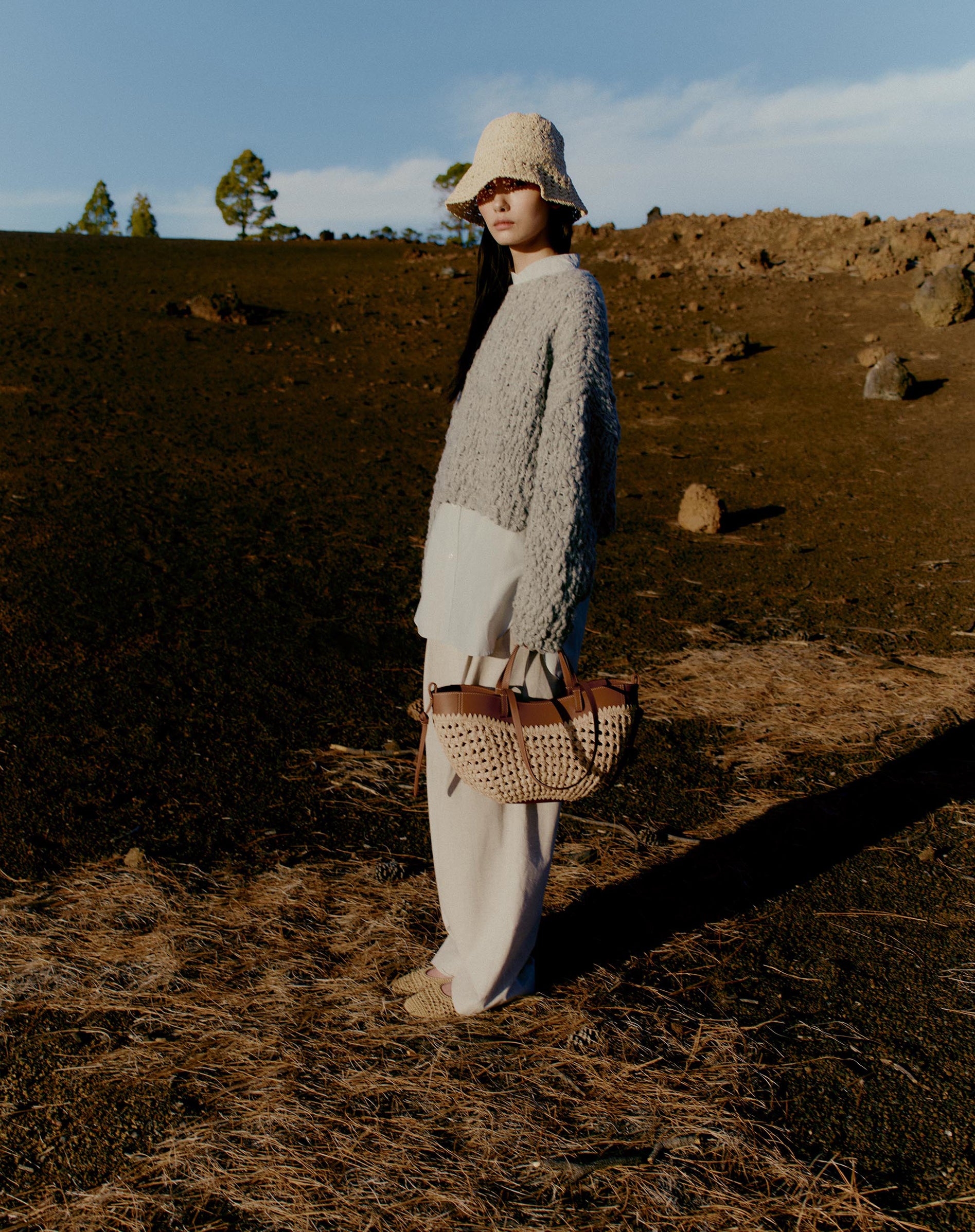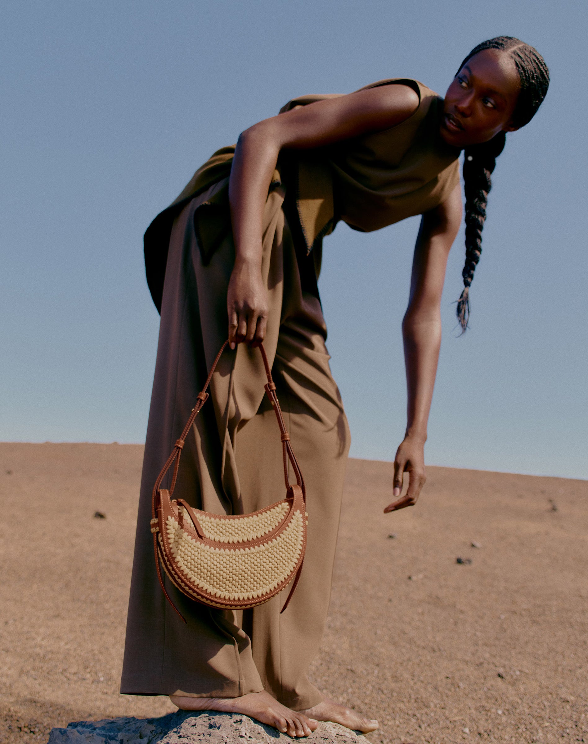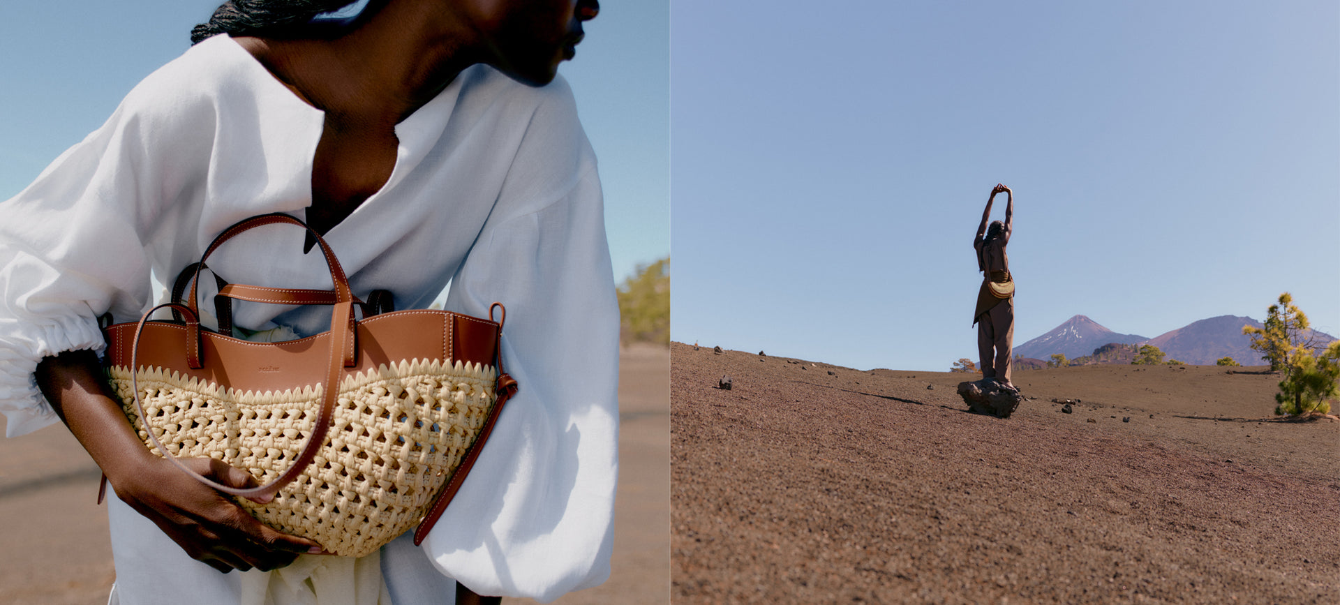 今回初めて、ポレーヌの3モデルに、しなやかにして強靱なこの植物素材が取り入れられることになりました。彫刻的なトートバッグに、そしてバスケットにと変身する「Cyme」と「Cyme Mini」では、クロシェの編み目の斬新な組み合わせによりラフィアでのドレスアップが実現。「Numéro Dix」でも、ライスステッチの技法を用い、ラフィア編みでハーフムーン型のフォルムを表現しています。どのバッグでも、レザーとラフィアとは、2つの素材の調和の取れたバランスを象徴する、手縫いのステッチで縫い合わされています。