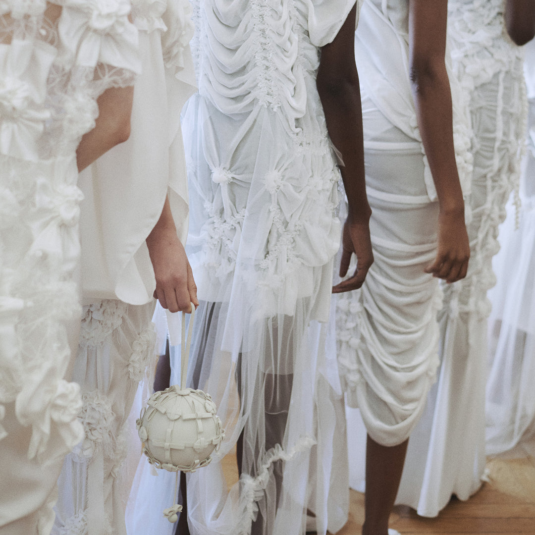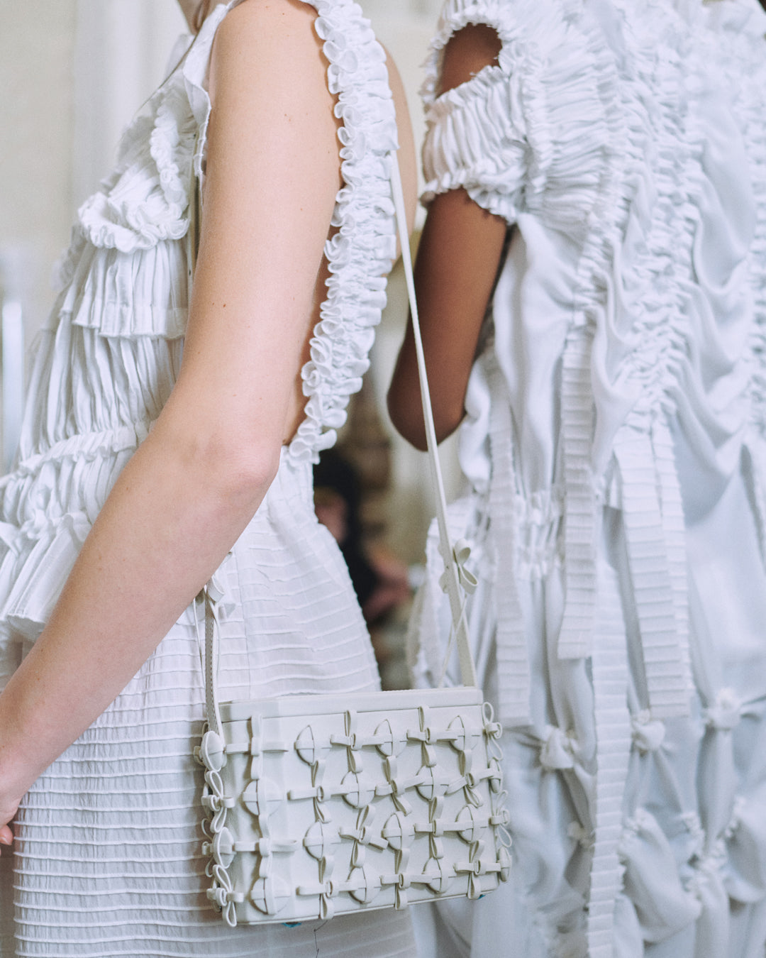アイルランドの職人技を駆使したホワイトワーク刺繍やユニークなシルエットへの現代的なアプローチで知られ、ブランドの名を冠したデザイナー。彼女の詩的なビジョンがレザーにまで拡張され、フォルムとクラフトマンシップが調和し、彫刻のような2種類のバッグがスペイン、ウブリケでポレーヌの手作りにより誕生しました。