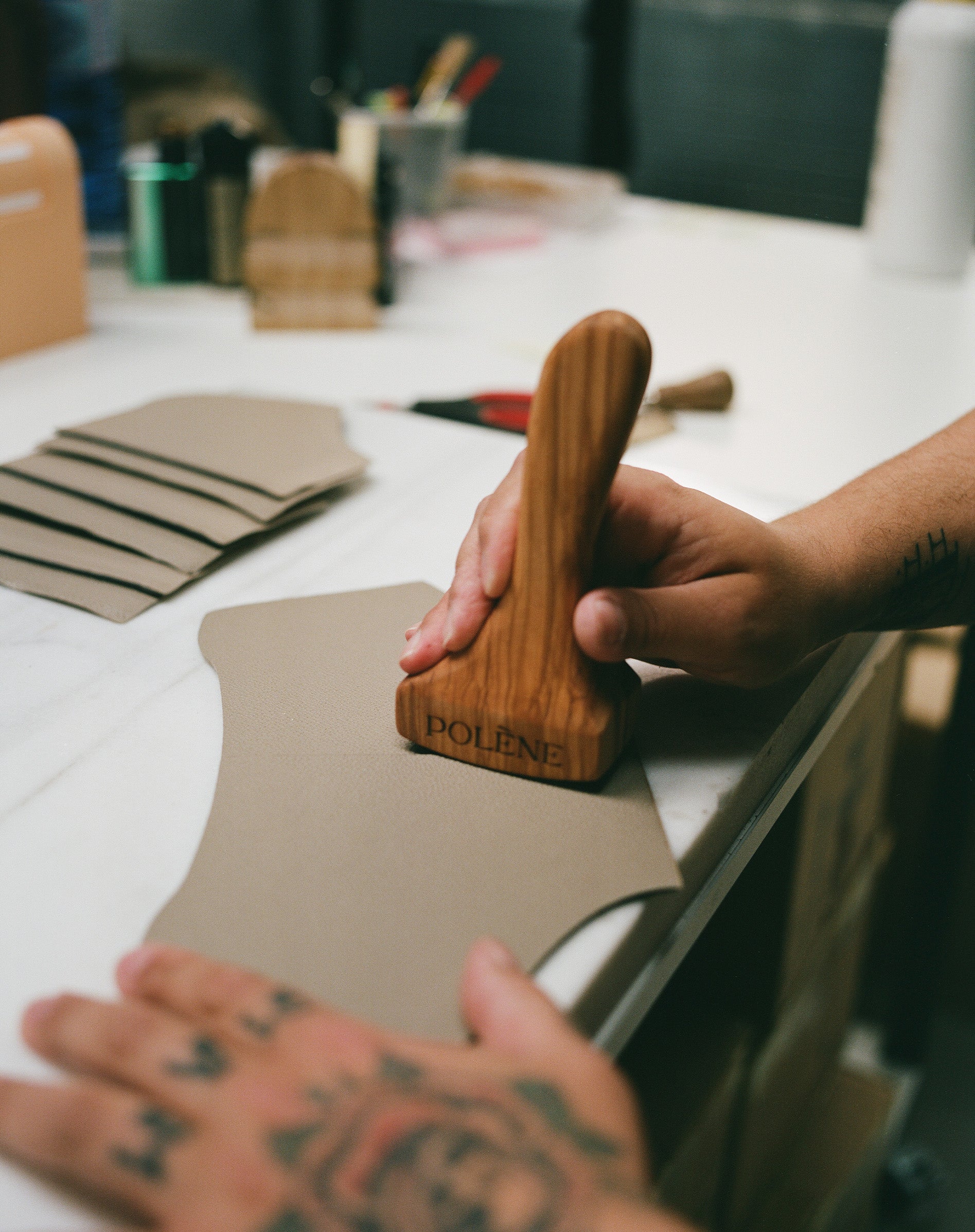 Polèneで使用する革はISO 9001認証を取得しており、型紙のカット前と製作の最終段階で、タンナーと職人によって何度も品質チェックが行われます。