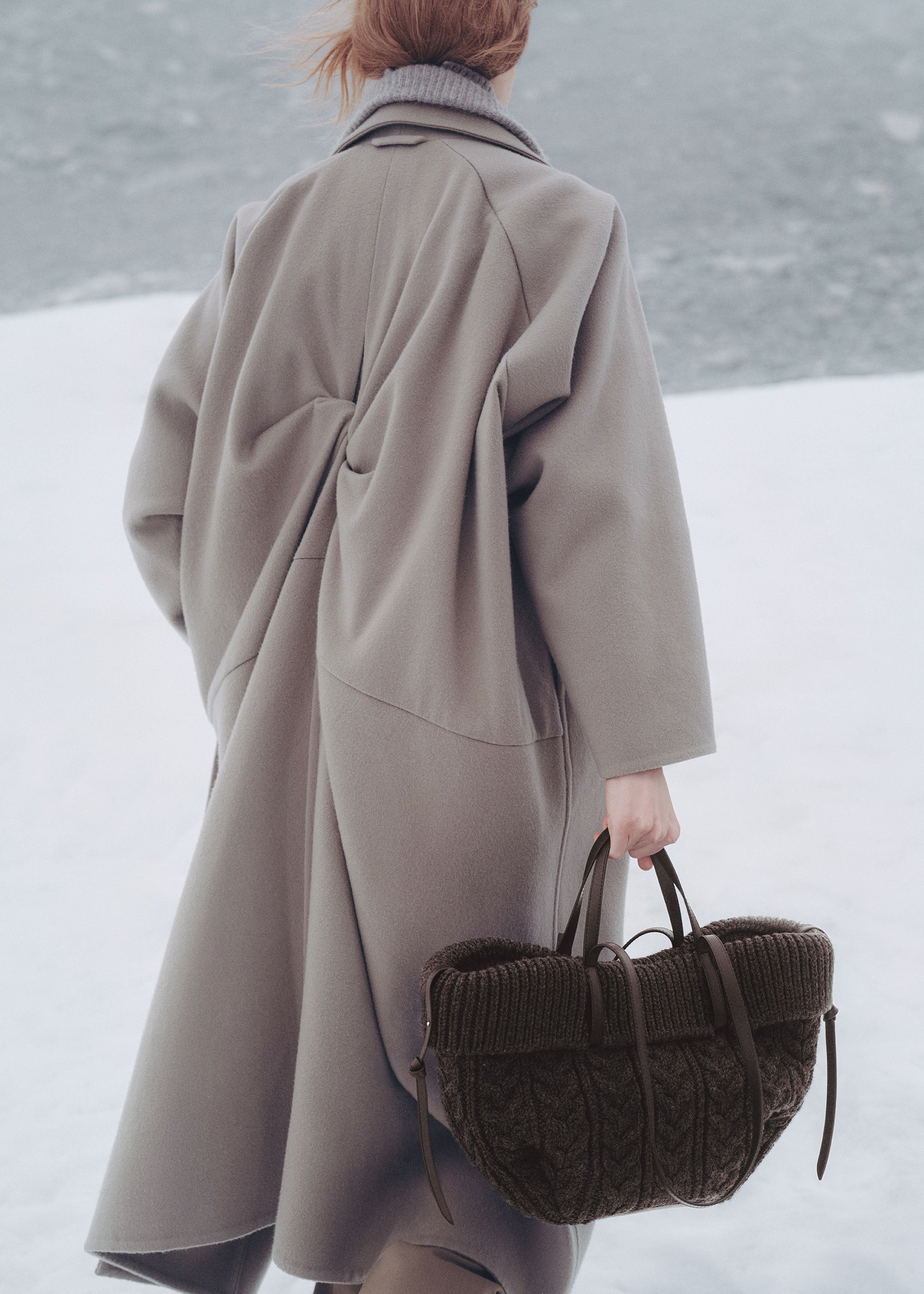 Cyme Miniの構築的なシルエットを包み込む、メリノウールの心地よい柔らかさ。職人技の妙から生まれたエディション メリノは、形通りに編み上げていく「フルファッション」*製法による編み立て、プレタポルテにインスピレーションを得たリブや、「ホースシュー」**模様のケーブル編みといったニットの伝統技法を用いてレザーのバッグを表現。サヴォアフェールの境界を探求する、装いも新たなウィンターエディションです。