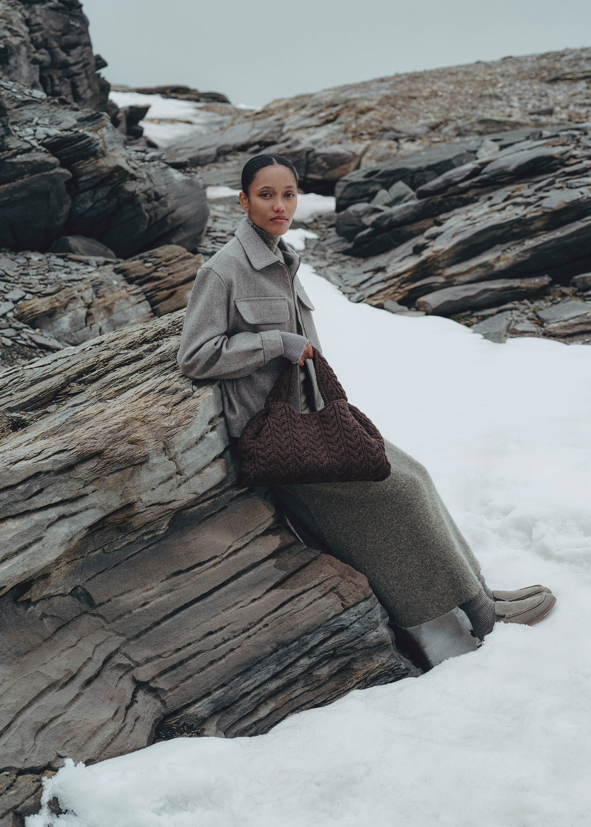 メリノウールの心地よい柔らかさが、ラージサイズデザインのNuméro Neufの彫刻的なシルエットと描くコントラスト。職人技の妙から生まれたエディション メリノは、形通りに編み上げていく「フルファッション」*製法による編み立て、職人が手作業で一つずつ目を拾って行う縁のかがり合わせ、プレタポルテにおける象徴的な技法「ホースシュー」**模様のケーブル編みといったニットの伝統技法を用いてレザーバッグモデルを表現。サヴォアフェールの境界を探求する、装いも新たなウィンターエディションです。